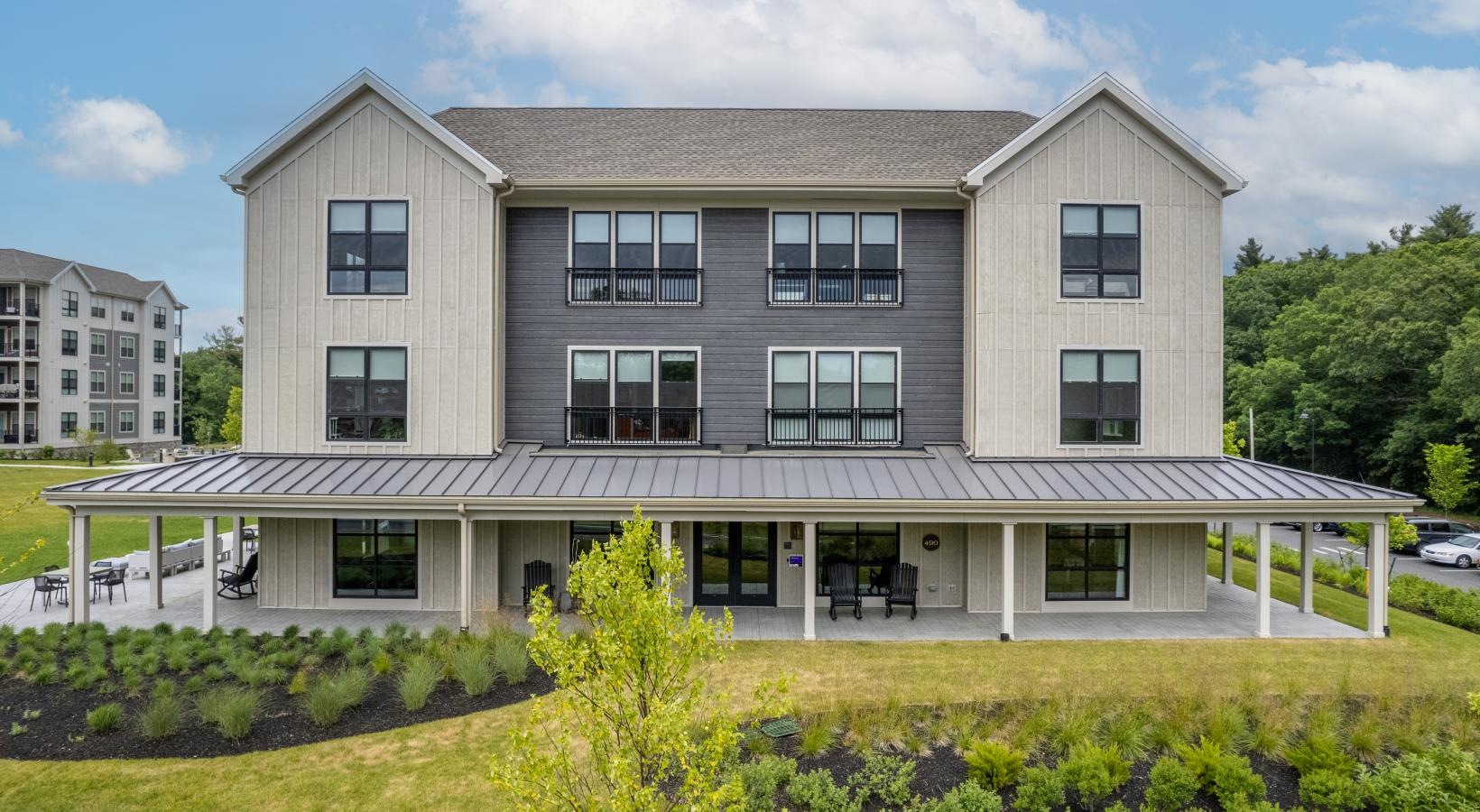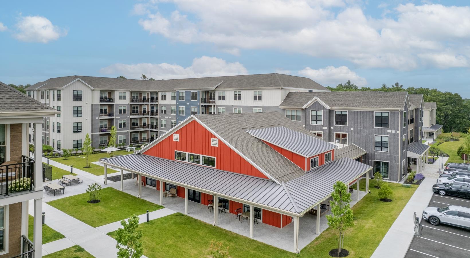 • Aerial view of Oxbow Wayland's clubhouse exterior
