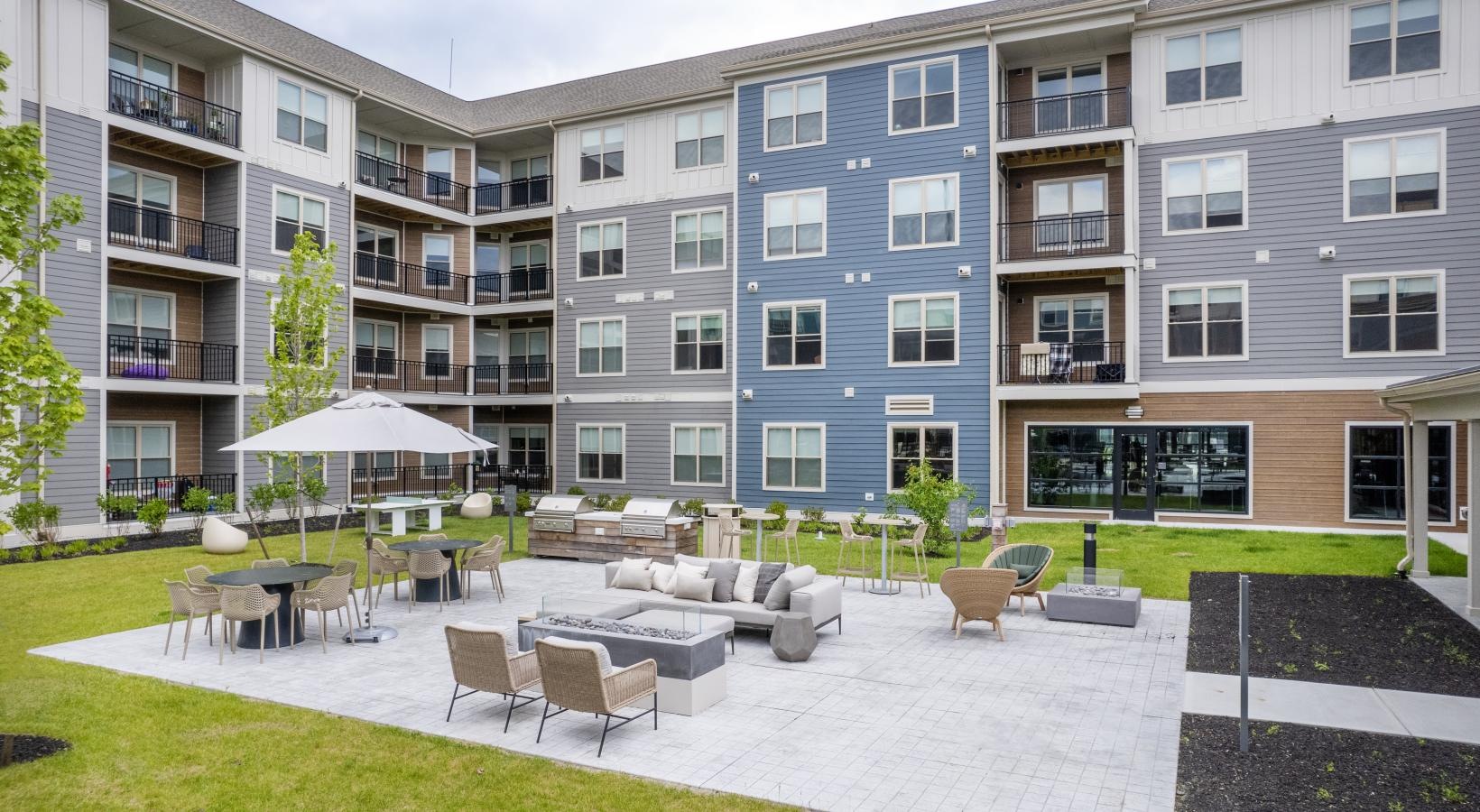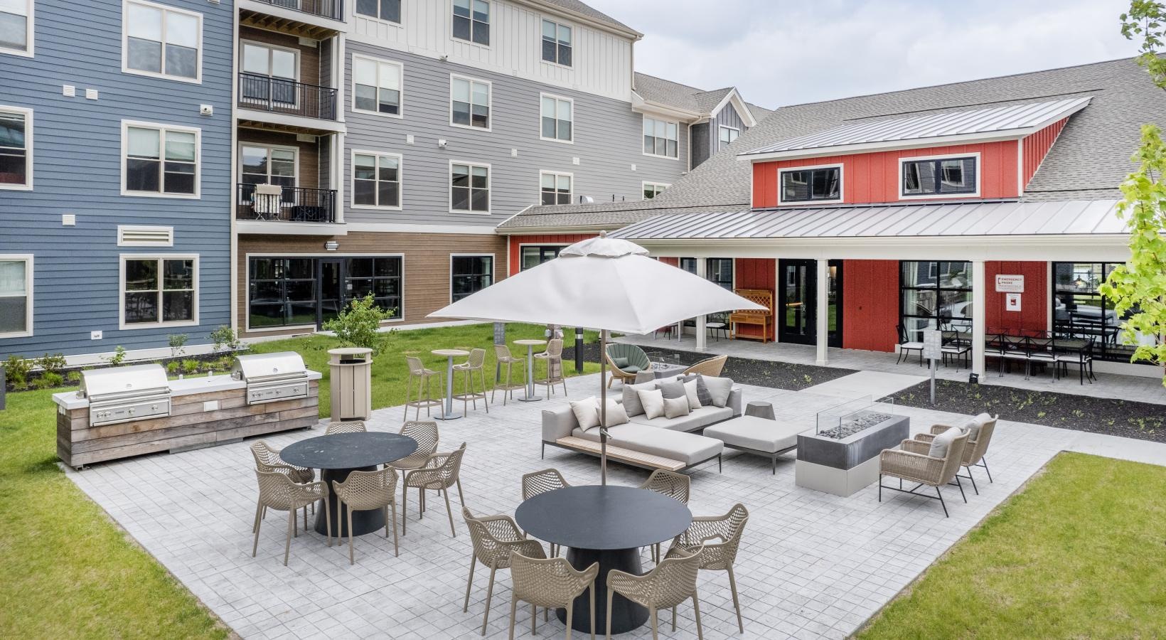 • Community outdoor patio area with grilling stations at Oxbow Wayland