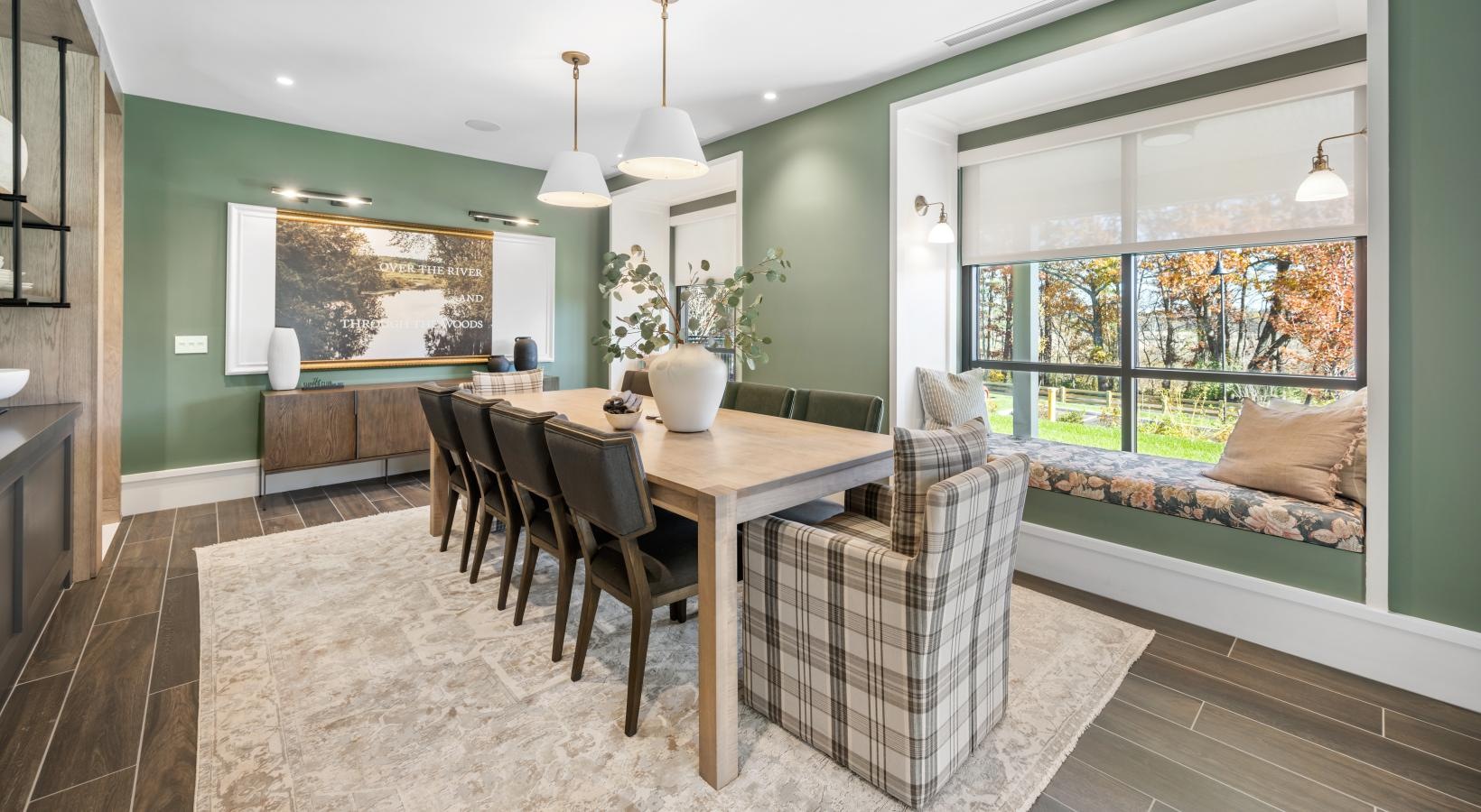 • Brightly lit community dining or conference room available for residents to use at Oxbow Wayland
